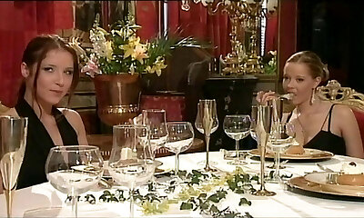 Retro lesbian brunette dame seduces a young blonde girl